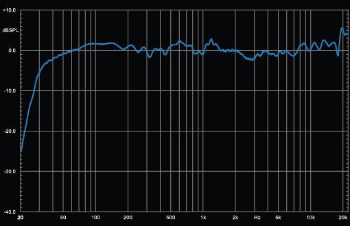 어떤 컨트롤 룸이라도 최소한 한개의 면은 있기 때문에, 100Hz 미만 초저역대는 완벽한 무향 공간에서 측정되지 않습니다. 이것은 스피커를 뒷 벽과 양 측면 벽에서 멀리 떨어뜨려놓은 굉장히 큰 컨트롤 룸의 환경과 비슷합니다. 컨트롤 룸의 사이즈가 작아질수록 저역대는 증가하는데, 이는 작은 룸에는 작은 스피커가 어울린다는 것을 뜻합니다. 위 주파수 응답 그래프는 어떠한 컨트롤 룸에서도 예측 가능한 최소한의 저역을 나타냅니다.