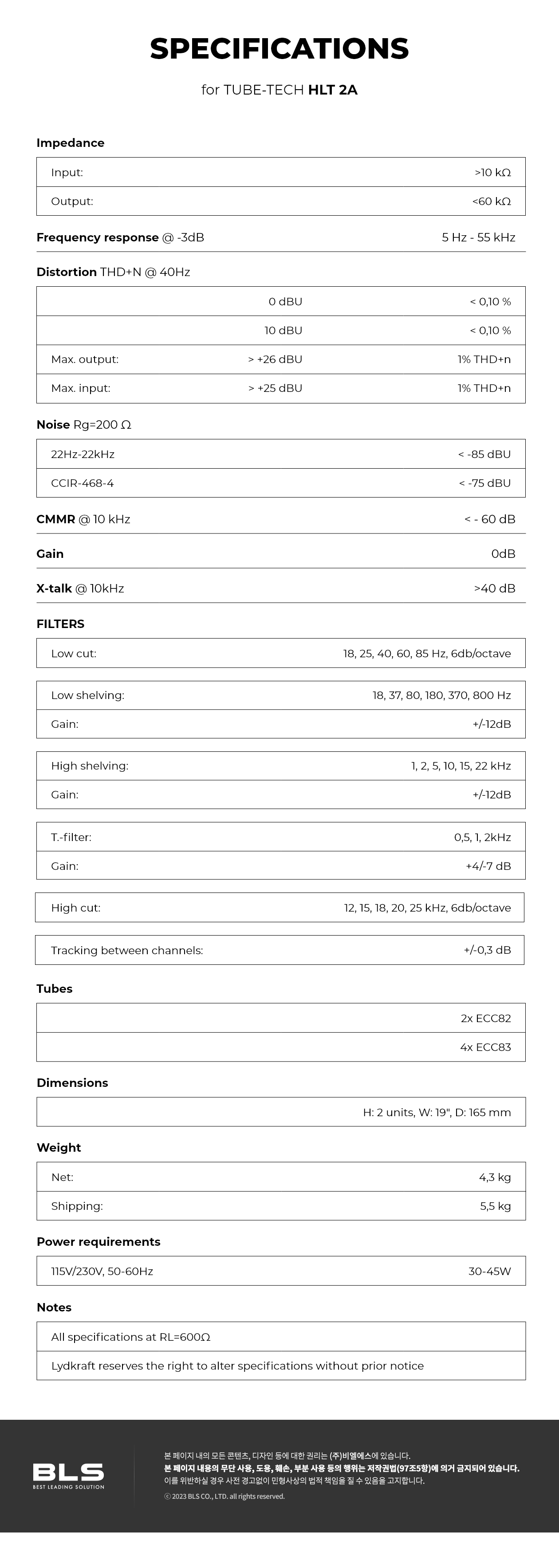 제조사(TUBE-TECH) | 수입사(비엘에스)