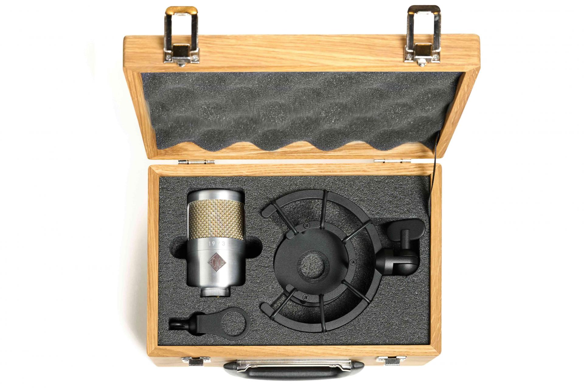 Soyuz Microphones /소유즈 마이크로폰/ 1973-S Deluxe /1973-S 디럭스/는 1973 라지 다이어프램 FET 콘덴서 마이크, 커스텀 오크 케이스, 수제작 쇼크 마운트, 커스텀 마이크 클립 및 XLR 케이블(3m)로 구성된 올-인-원 패키지 상품입니다. 그동안 레코딩에 필요한 액세서리를 따로 구입하는 번거로움을 겪었던 유저들의 편의를 위해 고안되었으며, 케이스를 여는 즉시 레코딩을 시작할 수 있습니다.