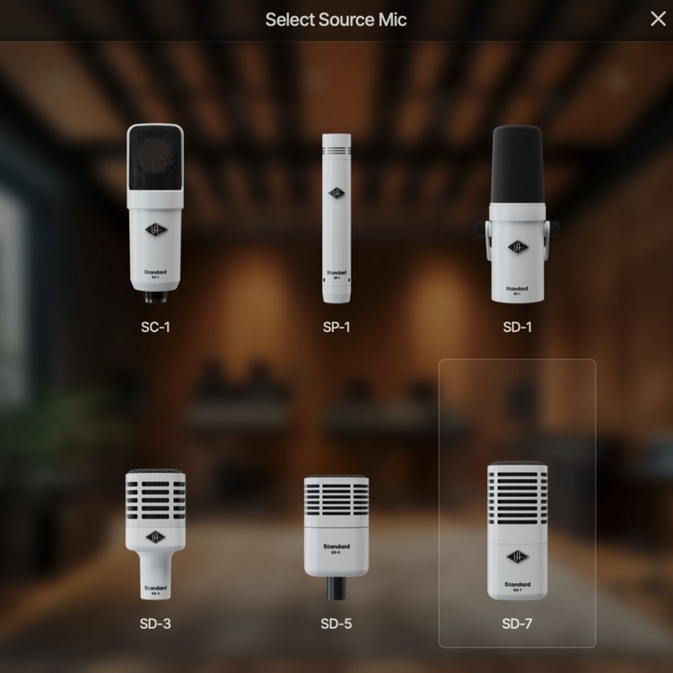 SD-7과 포함된 Hemisphere 마이크 컬렉션 플러그인은 UA 하드웨어를 사용하지 않고도 작동하며, 업계 최초로 필터, 근접 효과, 액시스(축)를 정밀하게 컨트롤할 수 있는 섬세한 기능을 제공합니다. 사운드 소스 앞에 SD-7 마이크를 설치하고 플러그인을 사용하여 기타 앰프의 '스위트 스팟'을 빠르게 포착할 수 있습니다.