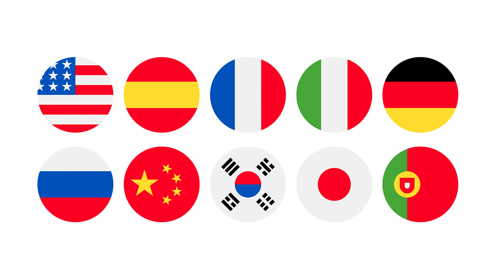 영어 / 스페인어 / 프랑스어 / 이탈리아어 / 독일어 / 러시아어 / 중국어 / 한국어 / 일본어 / 포르투갈어