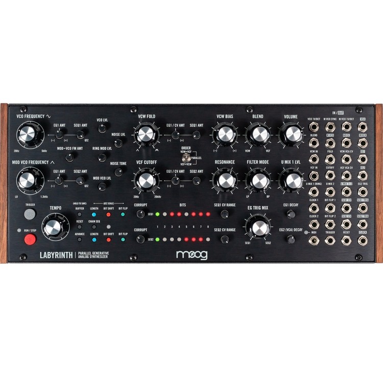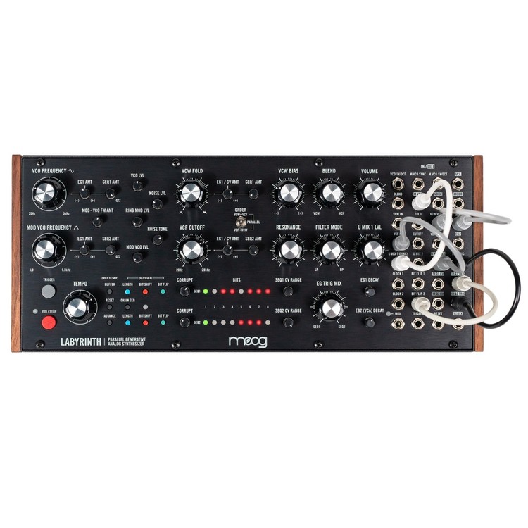 Moog Music /무그 뮤직/ Labyrinth /라비린스/는 세미-모듈러이자 아이디어 머신으로, 이미 익숙한 패턴 및 지금껏 들어보지 못한 패턴, 레이어, 텍스처를 발견합니다. 두 개의 제너레이티브 시퀀서가 시간의 흐름에 따라 변화하는 소리를 만들어내며, 직접 그 변화와 스케일을 조절하고 서로 조화롭게 연주해 인상 깊은 폴리리듬 멜로디를 만들어낼 수 있습니다. 이 유니크한 악기는 패러렐 아날로그 시그널 패스 덕분에 정적인 드럼 패턴이나 베이스라인에 색다른 느낌을 더할 때 특히 빛을 발합니다. Labyrinth 자체만으로도 완벽하게 사용할 수 있음은 물론, 기존 랙과 함께 사용해 음악의 깊이를 더할 수도 있어 라이브 공연장이나 작은 홈 스튜디오에서도 유용하게 쓰입니다. Labyrinth는 당신의 스튜디오를 새로운 아이디어가 가득한 창의적인 세계로 안내할 길잡이입니다.