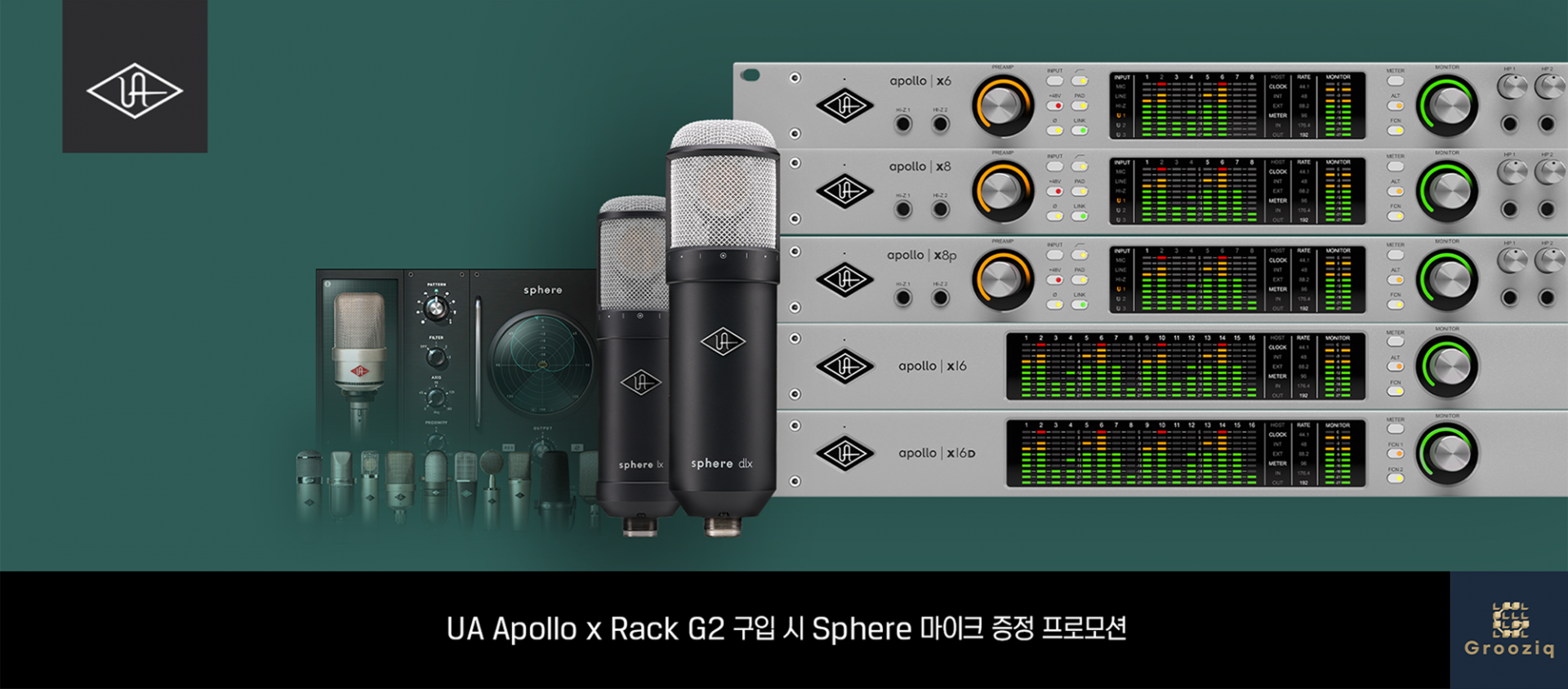 유니버설 오디오, UA Apollo X | Gen 2를 구입하고 최대 약 225만원 상당의 Sphere 모델링 마이크를 무료로 받으세요.