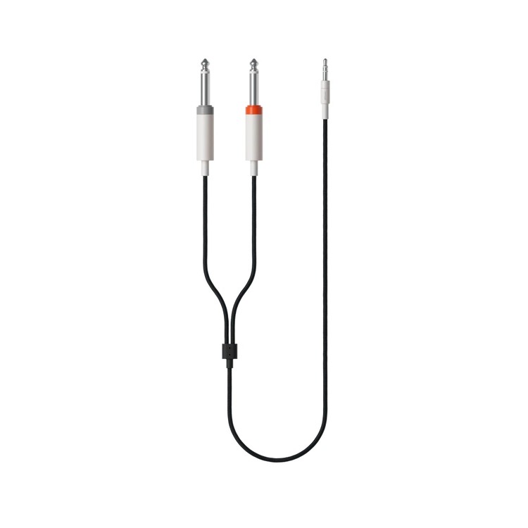 teenage engineering /틴에이지 엔지니어링/ textile audio cable 3.5mm - 2x 6.35mm /텍스타일 오디오 케이블 3.5mm - 2x 6.35mm/는 검은색 편조 나일론으로 절연 처리되어 구부러짐에 강한 내구성과 보호 기능을 갖춘 오디오 분할 케이블입니다. 신시사이저를 사운드 카드, 오디오 인터페이스 또는 믹싱 콘솔에 연결하는 데 사용됩니다.