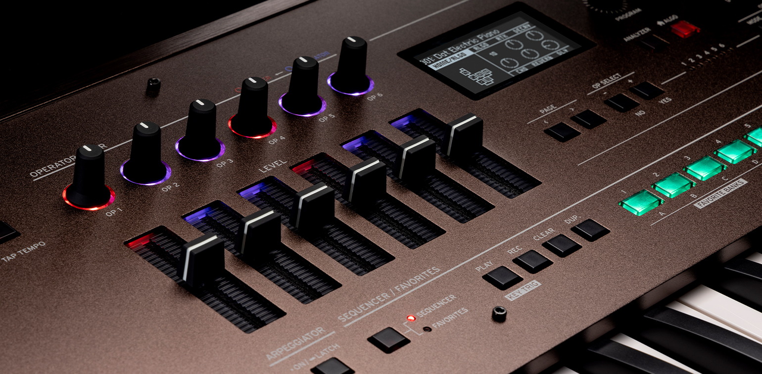- 컨트롤러: 모듈레이션 휠, 피치 휠, 레이시오 OP 1 - 6 노브, 레벨 OP 1-6 슬라이더, 데이터 인풋 A - F 노브