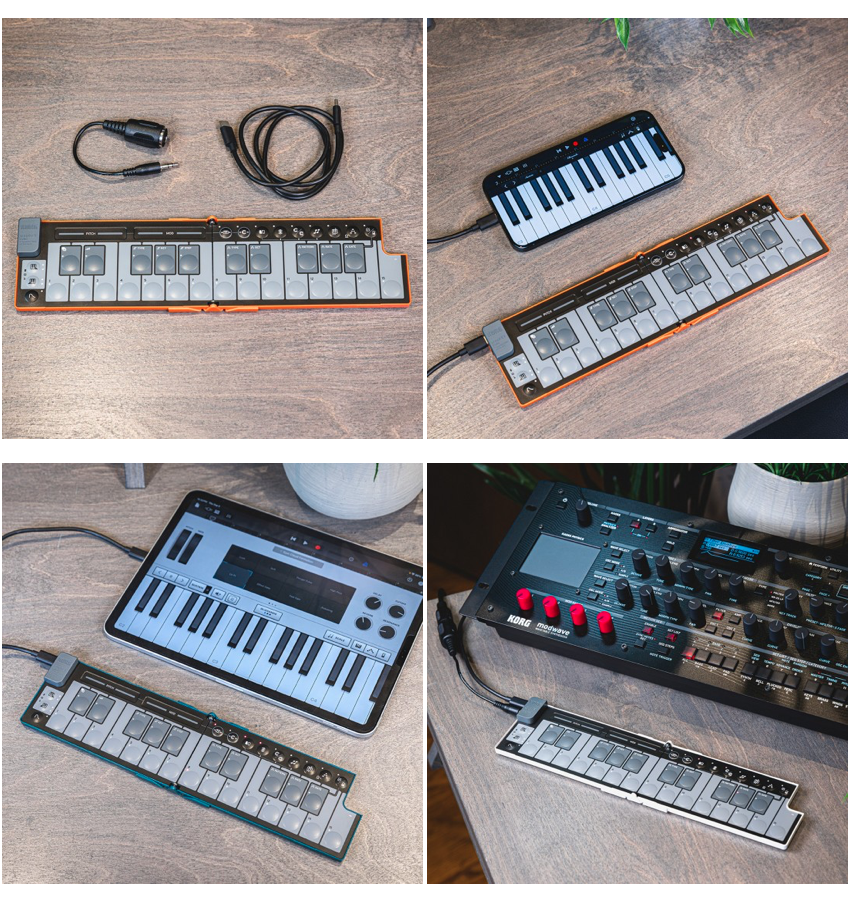 USB-C 및 TRS-MIDI를 지원하여 스마트폰, 태블릿, PC에 즉시 플러그 앤 플레이로 연결할 수 있습니다. 또한 TRS-MIDI 아웃풋은 아날로그 신시사이저나 드럼 머신과 같은 기존 MIDI 디바이스와의 연결을 지원하여 창작 가능성을 더욱 확장합니다.