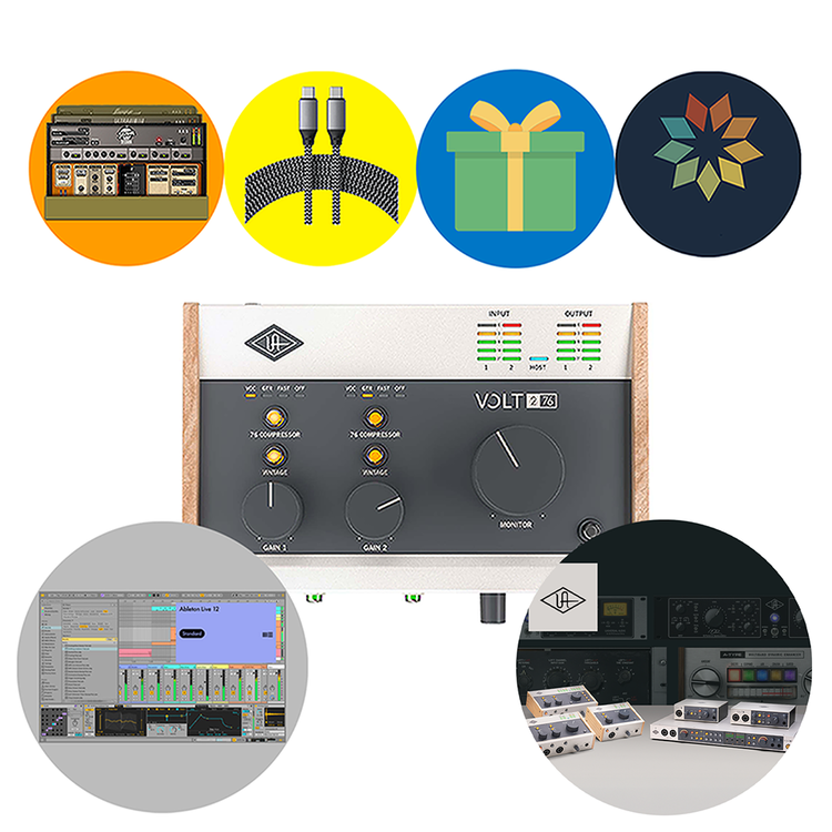 Universal Audio /유니버설 오디오, UA/ Volt 276 USB Recording Studio /볼트 276 USB 레코딩 스튜디오/를 통해 전설적인 사운드로 당신의 음악을 레코딩하세요. Volt 276 USB Recording Studio는 Mac, PC, iPad, iPhone용 온보드 컴프레서를 갖춘 고품질 2-in / 2-out USB 오디오 인터페이스로 수상 경력에 빛나는 DAW와 다양한 가상 악기 및 UAD Software /UAD 소프트웨어/의 Teletronix LA-2A Leveler Collection /텔레트로닉스 LA-2A 레벨러 컬렉션/ 및 Pultec Passive EQ Collection /펄텍 패시브 EQ 컬렉션/과 같은 클래식 하드웨어를 구현한 플러그인부터 PolyMAX Synth /폴리맥스 신스/, Century Tube Channel Strip /센츄리 튜브 채널 스트립/, Oxide Tape Recorder /옥사이드 테이프 레코더/까지, 다양한 소프트웨어가 포함되어 있습니다.