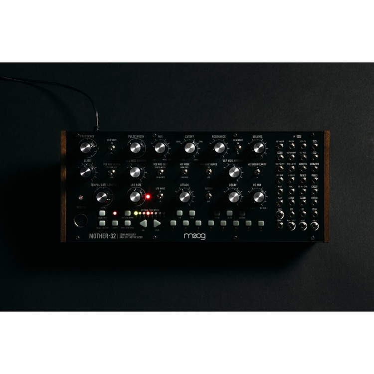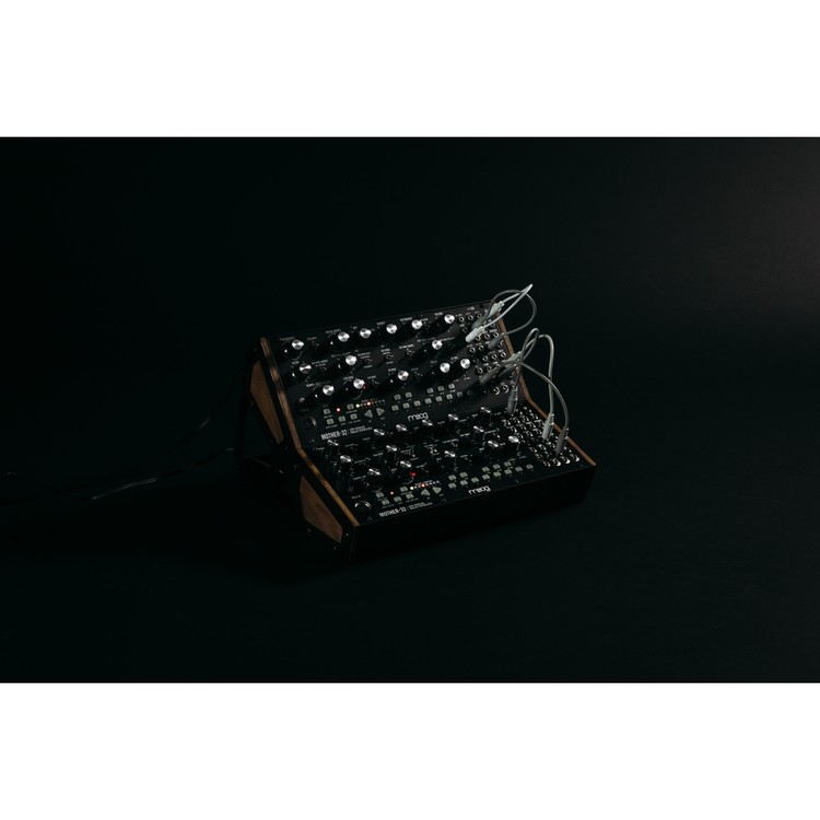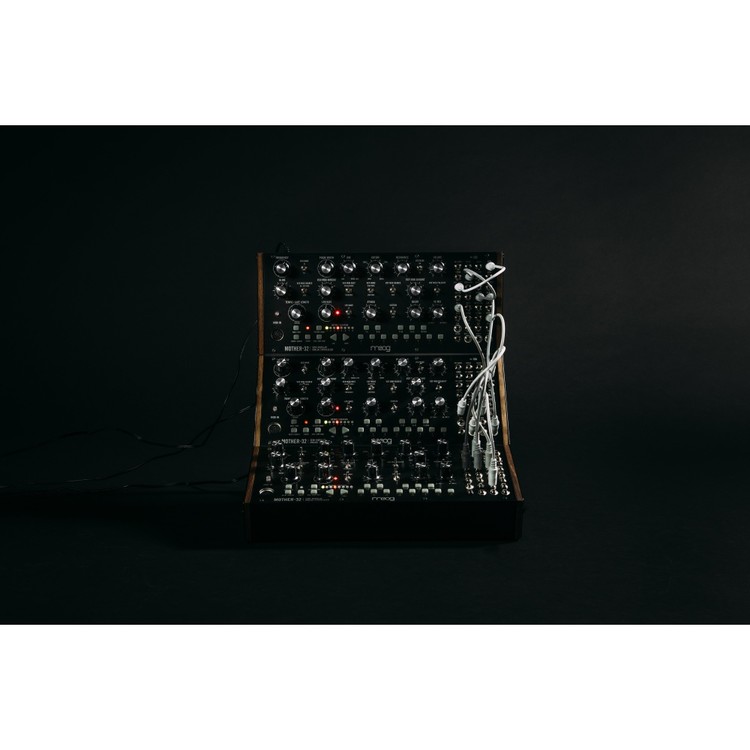 Mother-32는 검정색의 레이저 커팅된 알루미늄으로 마운트되어 있으며 전통적인 측면 우드 사이드로 마감되었습니다. 이 악기는 100% 아날로그로 VC 시퀀서와 32 포인트의 아날로그 패치베이를 탑재했습니다.