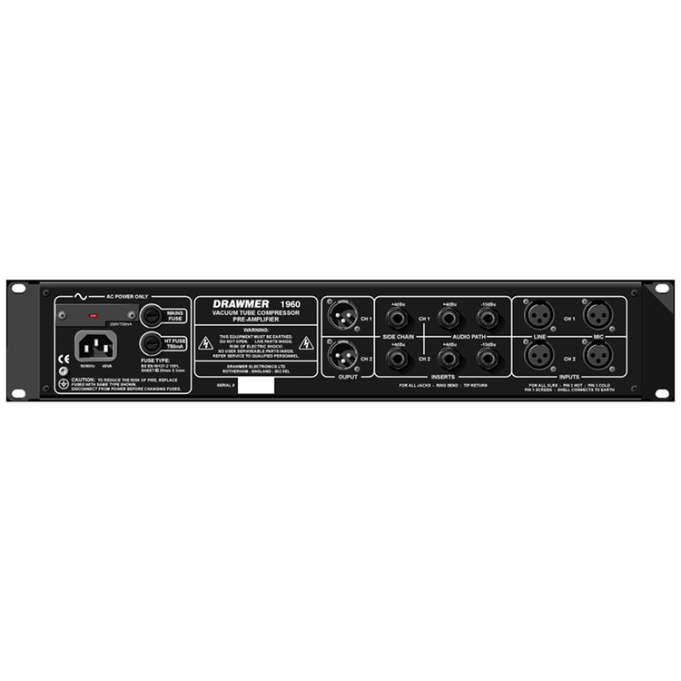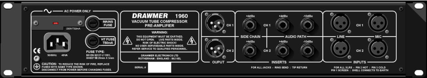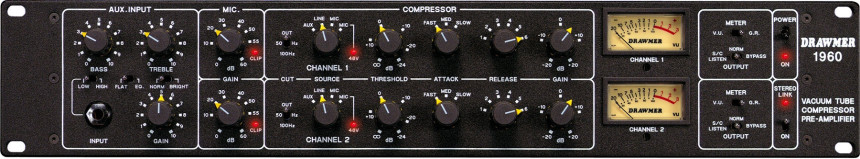 진공관이 "따뜻하고 더 살아있는"사운드를 제공하는 고유한 소리를 가지고 있다는 데에는 어떠한 프로듀서나 엔지니어도 의심의 여지가 없습니다. Drawmer 1960은 8 개의 액티브 튜브 스테이지와 솔루션의 저소음 및 안정성을 결합하여 음원과 레코딩기어 사이에 최고의 연결성을 제공합니다. Drawmer 1960은 각 채널이 완전히 자연스러운 "소프트 니 (soft knee)" 진공 튜브 컴프레서와 스위칭 가능한 48 볼트 팬텀 파워를 갖춘 로우노이즈 마이크 프리 앰프로 구성된 듀얼 튜브 컴프레서 & 마이크프리입니다. EQ가 장착된 추가 D.I 채널도 제공됩니다.