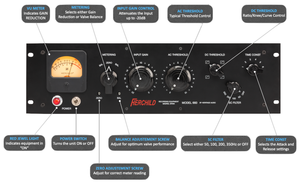 지난 60년 동안 수많은 히트 레코드에 사용되어 많은 뮤지션과 엔지니어들에게 영향을 미친 FAIRCHILD <페어차일드>는 음악 역사에서 가장 중요한 레코딩 장비 중 하나로 뽑힙니다. 안타깝게도 페어차일드는 약 500개 정도만 생산되었으며, 수십 년이 지난 현재는 좋은 컨디션의 제품을 찾아보기가 힘들어졌습니다. 그래서 오리지널 페어차일드는 전 세계 모든 아티스트와 엔지니어가 탐내는 매우 희귀하고 비싼 장비가 되었습니다. 하지만 지금, HERCHILD Model 660 <헤어차일드 모델 660>을 통해 수많은 사람들의 요구를 만족시킬 수 있게 되었습니다. 헤어차일드 모델 660은 11개의 진공관과 5개의 트랜스포머로 구성되어 있고, 매우 높은 전압에서 작동하며, 최상의 품질을 위해 최고의 구성 요소만 사용하여 오리지널을 충실히 재현합니다. 극도로 낮은 왜곡과 노이즈로 당신의 믹싱, 마스터링 결과를 더욱 완벽하게 만들 수 있습니다.