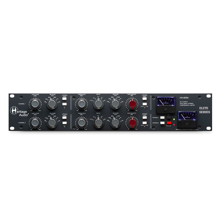 Heritage HA-609A는 스테레오 링크, 혹은 듀얼 모노 모드로 샤용할 수 있으며, 각 채널마다 트루 바이패스 기능이 제공됩니다. 제품에는 다이얼식 스위치만 사용했으며, 단계식 노브라서 리콜이나 채널 매칭도 완벽하게 할 수 있습니다. 그리고 Elite 제품군의 다른 모델과 마찬가지로, HA-609A 역시 최신 디자인 방식과 제조 방식을 사용해, 오디오 품질을 전혀 희생하지 않았습니다. 설계부터 제조까지, 모두 스페인의 Heritage Audio 본사에서 진행됩니다.